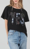 Remera premium de algodon con lycra con brillos de strass, letras simil jean.